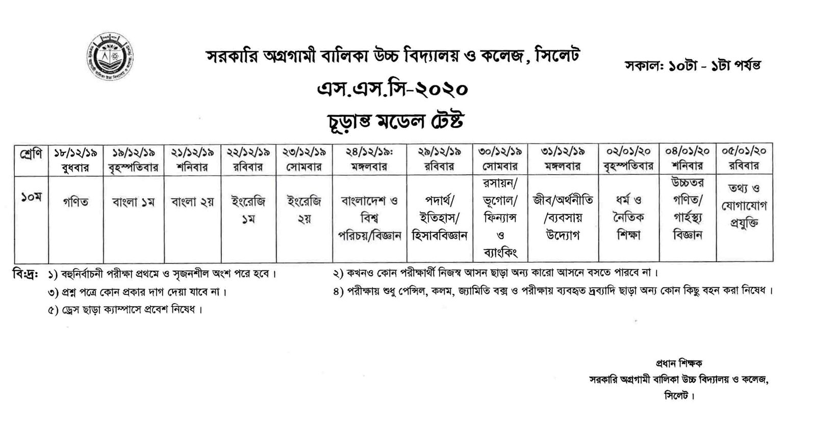 চুড়ান্ত মডেল টেস্ট রুটিন এস.এস.সি ২০২০ প্রকাশিত : তারিখ : ১১ বার : বুধ মাস : ডিসেম্বর বছর : ২০১৯ সংবাদ বিবরণ চুড়ান্ত মডেল টেস্ট রুটিন এস.এস.সি ২০২০ ফাইল